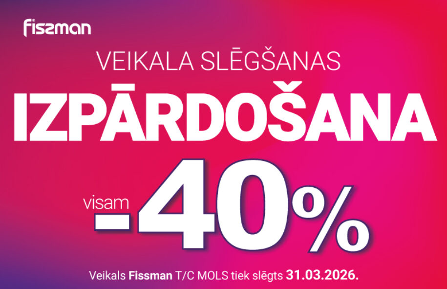 Izpārdošana spēkā līdz veikala slēgšanai 31.martā. Pasteidzies – preču skaits ierobežots!