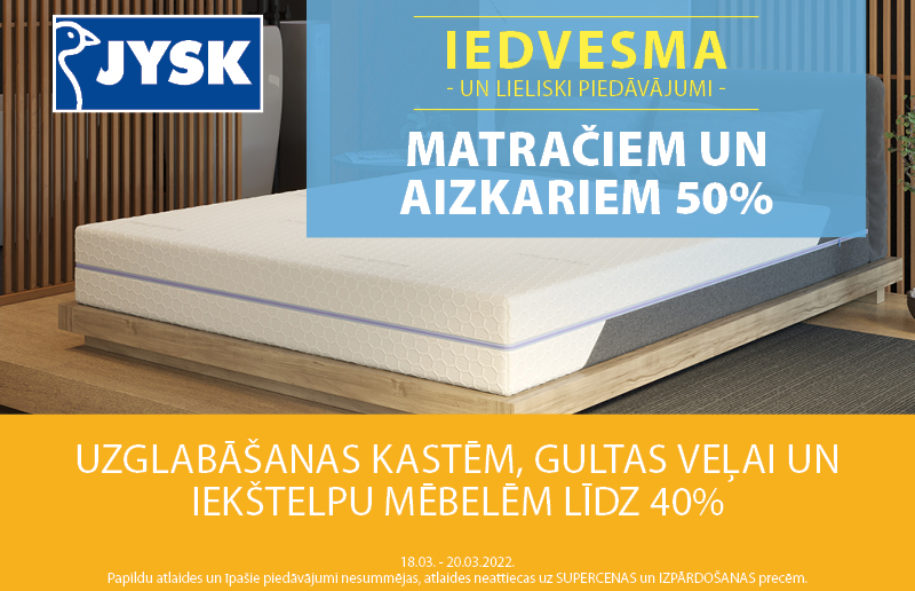 UZGLABĀŠANAS KASTĒM, GULTAS VEĻAI UN IEKŠTELPU MĒBELĒM LĪDZ 40%, BET MATRAČIEM UN AIZKARIEM 50%