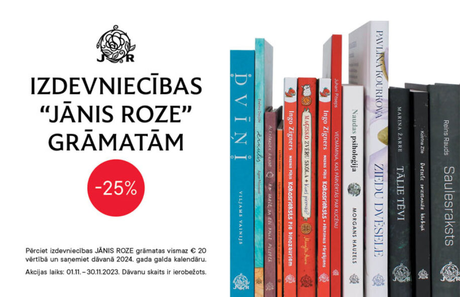 Izdevniecības JĀNIS ROZE grāmatām 25% atlaide un dāvana