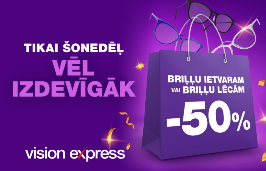 Pērc arī internetā!: https://visionexpress.lv/atlaide-brillu-ietvariem-vai-lecam/