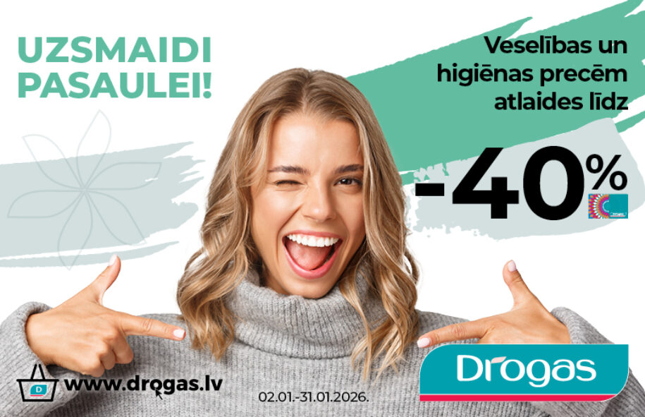 Veikalos Drogas veselības un higiēnas precēm atlaides līdz 40%!