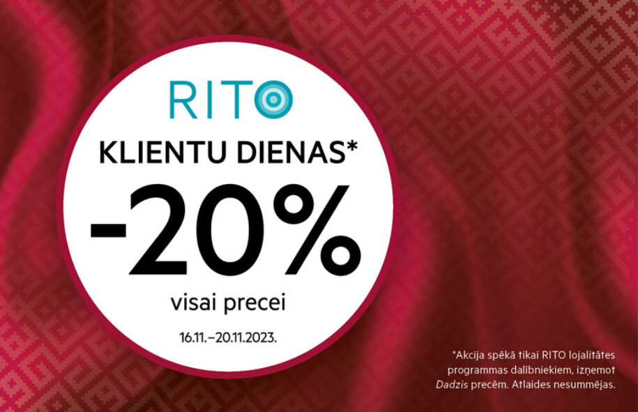 Дни клиентов в RITO. На все товары -20% скидка для участников программы лояльности RITO. Вы можете стать участником программы в магазине перед совершением покупки.